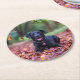 Black Labrador In Fall Leaves Round Paper Coaster