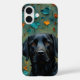 The striking black Labrador is beautifully rendered against a backdrop of rich, warm-toned fall leaves, creating a serene, nature-inspired scene. This case is perfect for lovers of the breed.