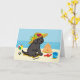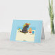 Black Labrador Puppy Straw Hat Cartoon Greeting Card. Cute Black Lab is having fun at the beach!! Whimsical and funny Labrador Retriever art created by Naomi Ochiai from Japan. Nice gift idea for dog people who love Labrador Retrievers.