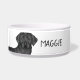 Destei's original cartoon illustration of a black colour Labrador Retriever breed dog's head close-up. There is also a personalizable text area for a name or other custom text such as "Water" or "Food".