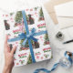 The repeated pattern on this Christmas wrapping paper includes an image of a beautiful black Labrador Retriever dog wearing a festive red bow. The dog sits in front of a decorated Holiday tree. Stylised red and green text says MERRY CHRISTMAS", and your own signature is in two fields for you to customise. Other images included in the pattern include red decorative snowflakes, candy canes, and a peppermint lolly pop. Cute!