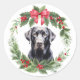 Black Labrador Retriever Dog Red Bow Holly Wreath Classic Round Sticker