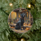Black Labrador Retriever Log Cabin Autumn Ceramic Tree Decoration