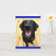 This fun note card features a happy black Labrador retriever puppy dog sitting on a wooden floor with a sweet royal blue border. She is ready to help you send smiles to special people.