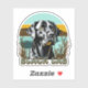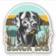 AI art watercolor black lab with a vintage text and sunset with retro colours teal and brown.
