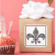 Square sticker with an image of a black lace fleur de lis on white adorned with a ruby heart. Red border. See matching custom-cut vinyl sticker, favour tag, label and wrapping paper. See the entire Cancan Sticker collection in the INVITES | Stickers & Labels section.