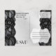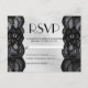 RSVP card featuring an elegant black and white, lace and satin design. Very classic and sophisticated design for any event. All photo print.
