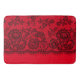 This rug is just as pictured! Vibrant Red and very soft material, nice to step in out of the tub! Matches my set of accessories and shower curtain! A must have to add some whimsy to your bathroom! Very nice, vibrant and clear print! Beautiful!
