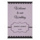Create a personalised welcome sign for your wedding with this poster. It's ready to be customised with your own welcome message, your names, and your wedding date. My black lace illustrations are set against a soft lavender background with a faux quilted pattern.