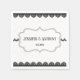Create your own personalised wedding cocktail napkins. These napkins feature your names and wedding date set inside an ornate frame with a black lace illustration accent against a white background with a faux quilted pattern.