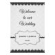 Create a personalised welcome sign for your wedding with this poster. It's ready to be customised with your own welcome message, your names, and your wedding date. My black lace illustrations are set against a white background with a faux quilted pattern.