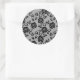 Black lace pattern on white background classic round sticker
