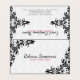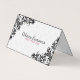 Elegant black floral lace swirls over white floral damasks pattern, business card folded template. For Event designers, wedding planners