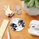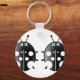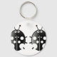 Illustration of four cute cartoon black ladybugs with white spots standing in a row. Image available on various gifts and products.