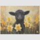 Black Lamb and Yellow Daffodils Painting Decoupage Tissue Paper