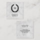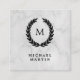 Black Laurel Wreath with Monogram on Marble Look Square Business Card