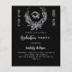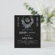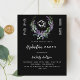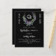 Black background. A floral wreath made of lavender flowers and watercolored eucalyptus greenery. Personalise and add a name and details. White text.