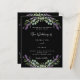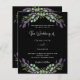 A black background decorated with lavender flowers and eucalyptus greenery. Personalise and your names and details.