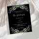 A black background decorated with lavender flowers and eucalyptus greenery. Personalise and your names and details.