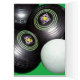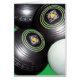 Featured On A Green Background Are Black Lawn Bowls And Kitty,