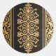 Black Leather Gold Embossed Pattern Classic Round Sticker