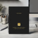 Stay organised and elevate your professional image with our Custom Spiral Planner, featuring a refined Black leather-look design that combines sophistication with functionality. A customisable square space on the cover allows you to prominently display your business logo over a gold texture while two additional lines of editable text offer room for your firm name and tagline, ensuring your brand is front and centre. On the top you have space for additional text.