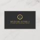 Black Leather Masculine Corporate Round Gold Logo Business Card