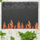 Black Leather Orange Flames Hot Fire Motorcycle Tea Towel