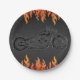 Black Leather Orange Flames Motorcycle Biker Party Paper Plate