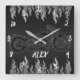 Black Leather & Silver Flames Hot Fire Motorcycle Square Wall Clock
