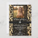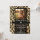 Personalised photo and text. glamourous and fancy black and gold brownish leopard pattern animal print background with black satin-look ribbon and faux rhinestone jewel. A pretty, feminine cute fashion grad card for the female.