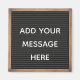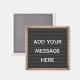 Add your own message or a name to this refrigerator magnet. This square shaped magnet has the look of a letterboard or marquee style sign in black in a wooden frame with your text in white lettering.