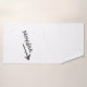 Simple yet stylish lettering design in dark gray on your bathroom towels. Combined with a matching gray arrow pointing slightly upwards. Personalize it with your name or any word you like.