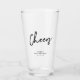 This custom beer glass is perfect for a modern milestone birthday party favour. The design features brush lettering " Cheers " with custom text. Matching birthday invitations and party supplies are available at my shop BaraBomDesign. Thank you!
