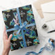 Black Light Neon Glow Xmas Snowflakes Cars Bells Wrapping Paper