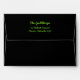 The text on this black and lime green A7 (fits 5"x7" Zazzle invitations and greeting cards) envelope is fully customisable and you can change it using the personalise option. For more extensive changes to the envelope, including changing the font, font colour, or text placement, use the customise option. The colours on this envelope are black and lime green.