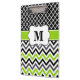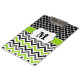 Show off your style in a fun way with this black and lime green quatrefoil and chevron modern and trendy personalised clipboard.