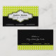Black lime green white polka dot interiors business cards, featuring a lime green and white polka dot pattern. The bottom part is of solid black colour. A black and a lime green stripe separate the two parts. Your company/name is typed on an elegant damask label with black and lime green outline. Cute, modern design with a retro feel to it, that can be used for many business fields such as interiors, hairstylist, beauty salon, nail salon, cosmetologists, decorator, therapist, crafter, fashion, make up artists and more.