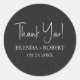 Whimsical minimalistic modern, customisable white script typography, welcome wedding gift sticker. The black linen printed texture background adds a touch of organic feel of classic elegance. Other colours are available.
