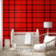 This wallpaper combines trendy black lines with a classic Scottish red background for a bold and modern design. The contrasting colours and geometric shapes create a visually striking and dynamic pattern, perfect for adding a contemporary touch to any room.