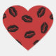 Black Lips Pattern on Red Background Heart Sticker