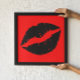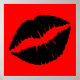 Black lipstick kiss print on red background. Girly lips graphic in red and black. Glam design for her.