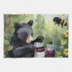 Black little bear with blackberry jams tea towel