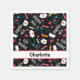Create a coordinated party for a nurse with these napkins that can be customised with a name or other words for the event. The art includes words Love a Nurse, a stethoscope, colourful bandaids, a red cross, retro nursing caps, red hearts and white dots on a black background. The whimsy art Love a Nurse is original art by Phyllis Dobbs. The colours are turquoise blue, white, red, black, bright fuchsia pink, lime green. Fully customisable. Other colour backgrounds are available as well as coordinating products and party goods.