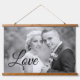 Black Love script typography wedding photo hanging wood topped tapestry. Just change image!