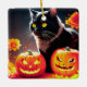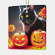Black Magic Cat with Pumpkins Ceramic Ornament
