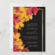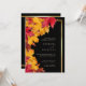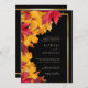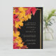 The invitation showcases a captivating interplay of light and shadow, with the gold accents adding a touch of luxury to the overall design. The rustic charm of the autumn leaves complements the dark elegance of the black background, creating a visually stunning and unforgettable invitation.