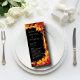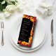 Guide your guests through your special day with our exquisite wedding program. This captivating design features a rustic backdrop of autumn leaves, complemented by a shorter, black panel adorned with a shimmering gold frame and surrounded by autumn foliage. The couple's names are prominently displayed in bold typography, followed by the wedding date and venue location.