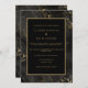 Black marble agate gold border wedding invitation