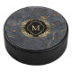 Black Marble Gold Badge Monogram Hockey Puck